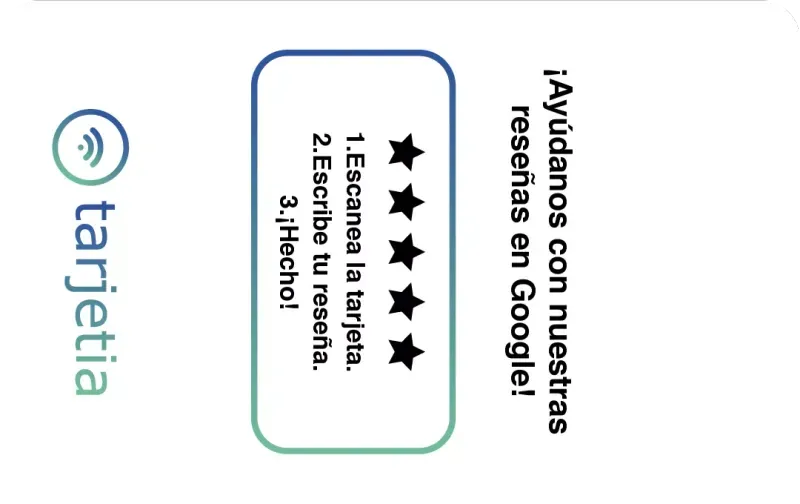 Con nuestras tarjetas NFC, podrás hacer precisamente eso. En lugar de pedirles a tus clientes que busquen tu negocio en línea y luego que dejen una reseña, con solo un toque de su teléfono en la tarjeta, serán llevados directamente a tus reseñas en Google.